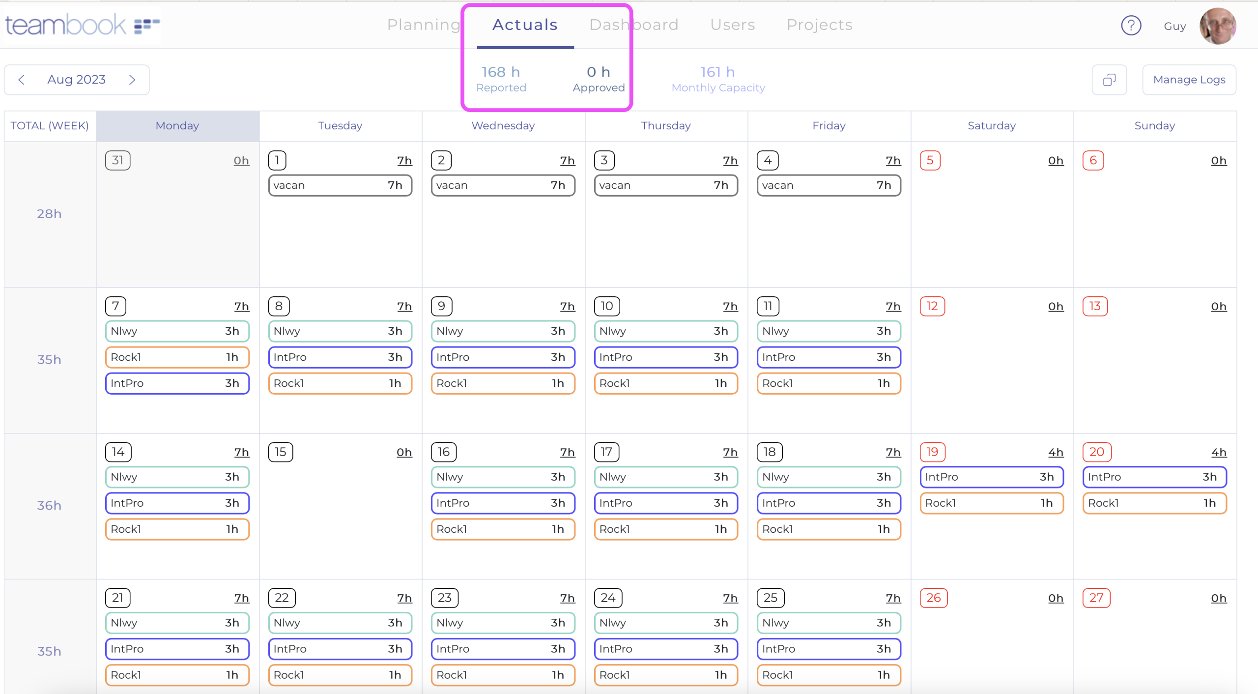 - Scheduled Hours View: When planning each slot, Teambook displays the hours already scheduled, providing a summary view that helps prevent overbooking.